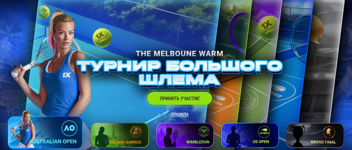 Акция 1xBet на турниры Большого шлема 2026 — это восемь месяцев возможностей для любителей тенниса. Пять розыгрышей, гарантированные фрибеты до 300 USD и шанс забрать технику Apple без дополнительных вложений. Первый турнир Australian Open стартует 12 января. Зарегистрируйтесь уже сейчас с промокодом 1xBet Newplay21 и начинайте копить билеты с первых матчей сезона!
