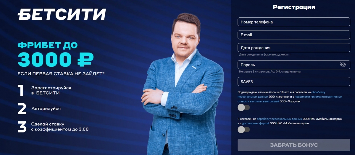 Фрибет Бетсити 3000 рублей за первую ставку